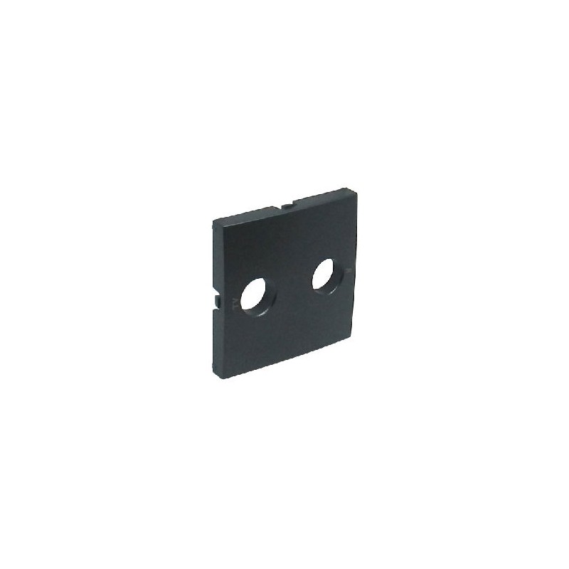 Tapa en acabado gris diseñada para cubrir tomas de radio y televisión en sistemas modulares empotrables. Ofrece una solución funcional y estética para conexiones multimedia en entornos residenciales y comerciales, garantizando protección y un acabado discreto.