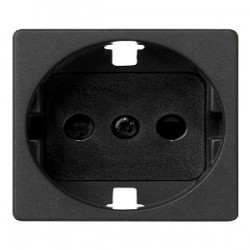 Tapa para base de enchufe Schuko con sistema de seguridad incorporado, diseñada para evitar contactos accidentales y aumentar la protección en instalaciones eléctricas. Acabado en grafito, ideal para entornos modernos o combinaciones con otros elementos oscuros de la serie Simon 27. Fabricada con materiales resistentes para un uso prolongado y seguro.