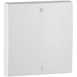 Tecla de interruptor bipolar en color blanco, con marcación "I/O" (encendido/apagado). Diseñada para mecanismos modulares empotrables, permite la apertura simultánea de los dos polos de un circuito, proporcionando mayor seguridad en el corte de corriente. Ideal para aplicaciones que requieren un aislamiento completo, como electrodomésticos o equipos técnicos.