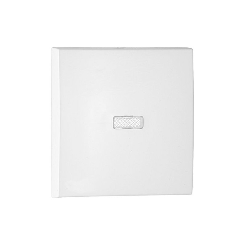 Tecla interruptor en color blanco con indicador luminoso integrado, diseñada para mecanismos modulares empotrables. Permite controlar circuitos eléctricos con una señal visual que facilita su localización en ambientes oscuros o con poca luz. Ideal para instalaciones residenciales, comerciales o de oficinas que requieren funcionalidad y estética.