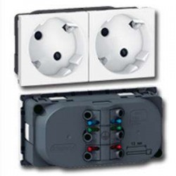 Toma corriente Legrand LEG077252, doble base 2x 2 polos + tierra, conexión automática, color blanco. Ideal para instalaciones residenciales y comerciales que requieren múltiples puntos de alimentación con una instalación rápida y segura.