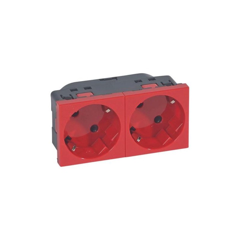 Toma corriente Legrand LEG077272, doble base 2x 2 polos + tierra, conexión automática, color rojo. Perfecta para instalaciones que requieren múltiples puntos de alimentación con instalación rápida y segura, con fácil identificación gracias a su color rojo.