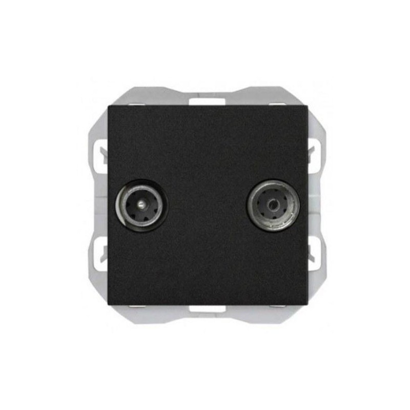 Toma combinada para señales de radio, televisión y satélite en acabado negro mate, diseñada para instalaciones de antena con una única salida. Ofrece una conexión fiable y de alta calidad, garantizando una recepción óptima en entornos residenciales y comerciales. Fabricada con materiales resistentes, asegura una instalación sencilla y una integración elegante y discreta en cualquier espacio.