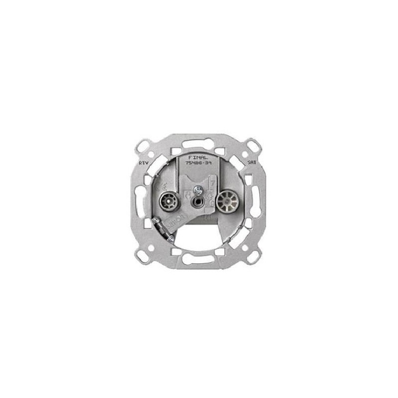 La toma R-TV/SAT inductiva final SIMON 75 Ref. 7548839 está diseñada para cerrar la línea de distribución de antena de radio, televisión y satélite en instalaciones colectivas. Garantiza una correcta terminación de la señal, evitando reflexiones y pérdidas, y asegurando una recepción óptima en el punto final. Su acabado blanco facilita la integración estética con otros mecanismos de la serie Simon 75. Fabricada para montaje en superficie, con instalación sencilla mediante tornillos.