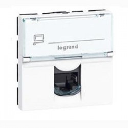 Toma informática Legrand LEG076564, 2 módulos, RJ45 UTP categoría 6, color blanco. Diseñada para conexiones de red de alta velocidad y rendimiento, ideal para instalaciones residenciales y comerciales que requieren múltiples puntos de conexión eficientes y organizados.