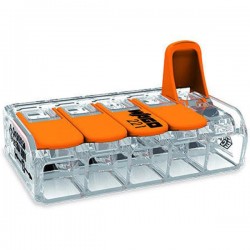 Borna de conexión Wago 221 615, diseñada para realizar empalmes rápidos y seguros de cables eléctricos. Permite conexiones fiables sin necesidad de herramientas especiales y facilita el montaje y mantenimiento de instalaciones. Su diseño compacto y transparente permite verificar visualmente la correcta inserción del conductor, garantizando durabilidad, resistencia mecánica y seguridad eléctrica en entornos residenciales, comerciales e industriales.